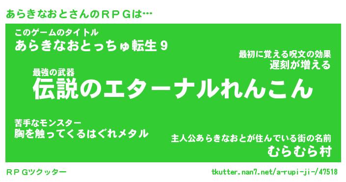 | 伝説のあだ名 | 『不死鳥の傭兵あらきなおと』 |