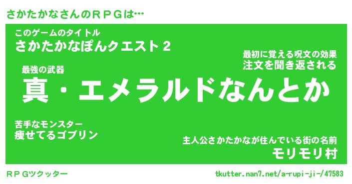 | 男性向けラノベタイトル風あだ名 | 『サカタカナアートオンライン』 |