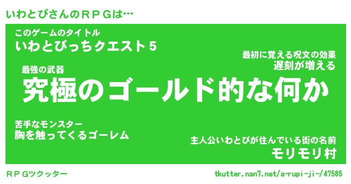 | 男性向けラノベタイトル風あだ名 | 『いわとびの憂鬱』 |