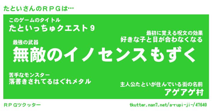 | 男性向けラノベタイトル風あだ名 | 『タトイアートオンライン』 |