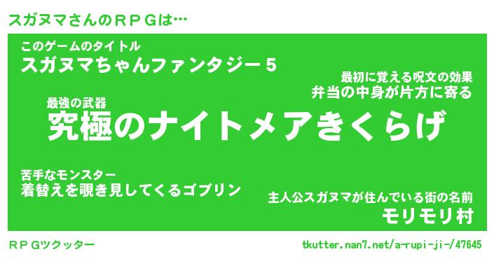 | 男性向けラノベタイトル風あだ名 | 『スガヌマの憂鬱』 |