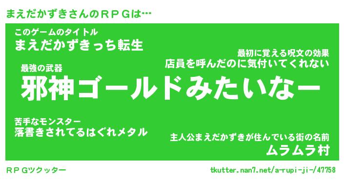 | 男性向けラノベタイトル風あだ名 | 『マエダカズキアートオンライン』 |
