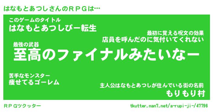 | 男性向けラノベタイトル風あだ名 | 『ハナモトアツシアートオンライン』 |