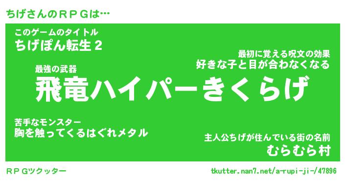 | ファンタジー風あだ名 | 『チゲフェル』『エターナルチゲー』 |