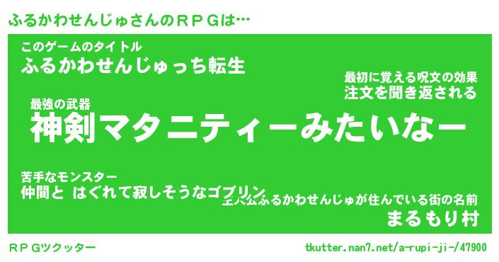 | 男性向けラノベタイトル風あだ名 | 『ふるかわせんじゅの憂鬱』 |