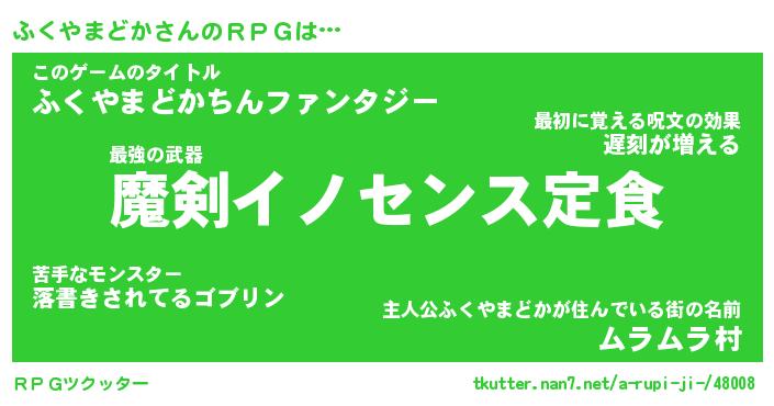 | 胡散臭い通販商品みたいなあだ名 | 『必ず成功する霊験あらたかなお札…その名も「ふくやまどか」』 |