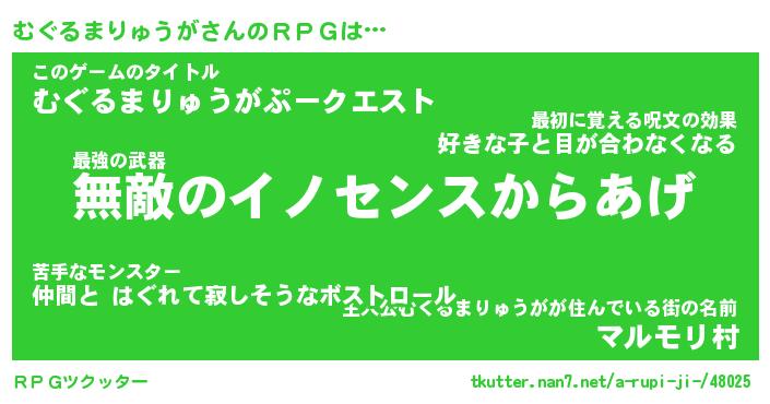 | 肩書あだ名 | 『むぐるまりゅうが御曹司』 |