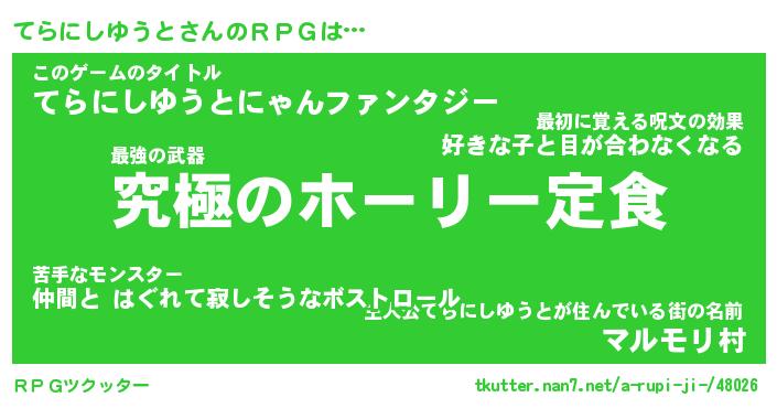 | ヒーロー風カッコイイあだ名 | 『スーパーテラニシユウト』 |