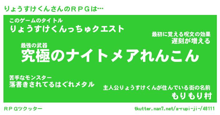 | 男性向けラノベタイトル風あだ名 | 『りょうすけくんの憂鬱』 |