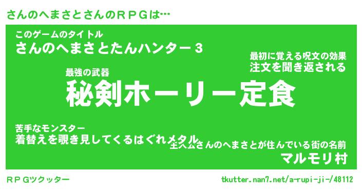 | 男性向けラノベタイトル風あだ名 | 『さんのへまさとの憂鬱』 |