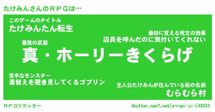 | 胡散臭い通販商品みたいなあだ名 | 『億万長者になれる水晶球…その名も「たけみん」』 |