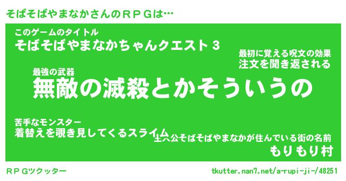 | 胡散臭い通販商品みたいなあだ名 | 『モテモテ間違いなし霊験あらたかなお札…その名も「そばそばやまなか」』 |