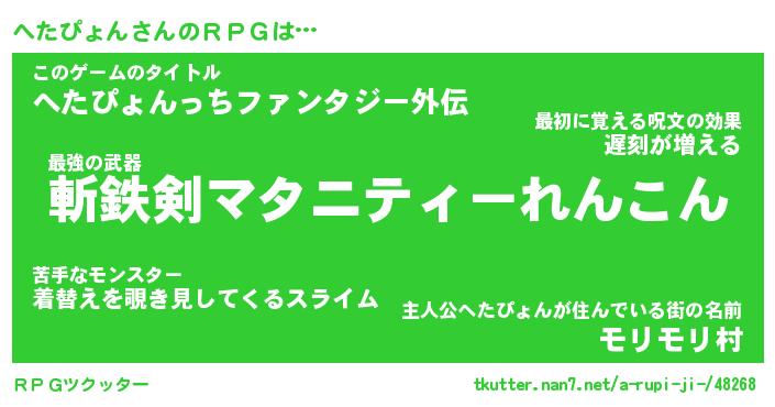 | 胡散臭い通販商品みたいなあだ名 | 『必ず成功する霊験あらたかなお札…その名も「へたぴょん」』 |