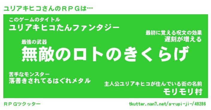 | ヒーロー風カッコイイあだ名 | 『スーパーユリアキヒコ』『幻影騎士ユリ』 |