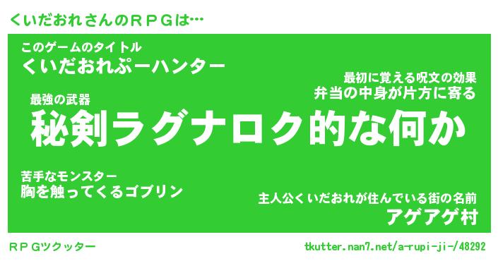 | 男性向けラノベタイトル風あだ名 | 『くいだおれの憂鬱』 |