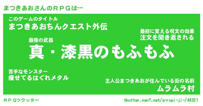 | 男性向けラノベタイトル風あだ名 | 『マツキアオアートオンライン』 |