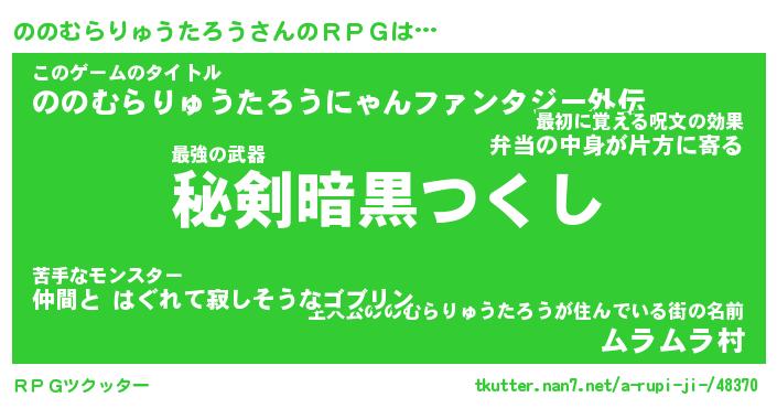 | 男性向けラノベタイトル風あだ名 | 『ののむらりゅうたろうの憂鬱』 |