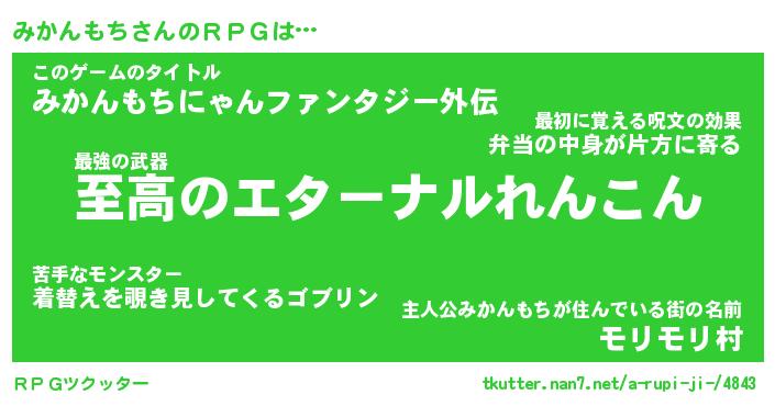 | ファンタジー風あだ名 | 『ミカフェル』『エターナルミカンモチー』 |