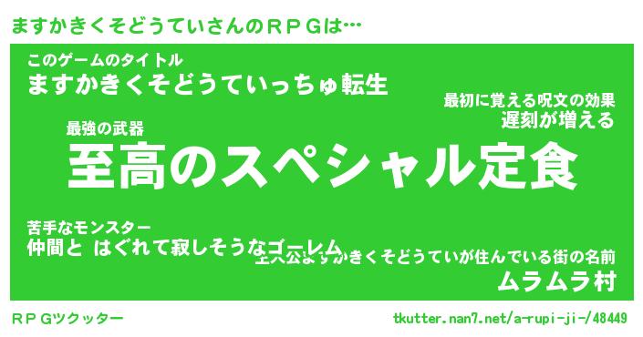 | 伝説のあだ名 | 『不死鳥の竜騎士ますかきくそどうてい』 |