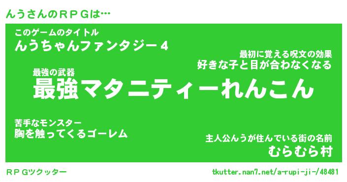| ヘコむあだ名 | 『んうっふぃ~』『つくし』『んうを』 |