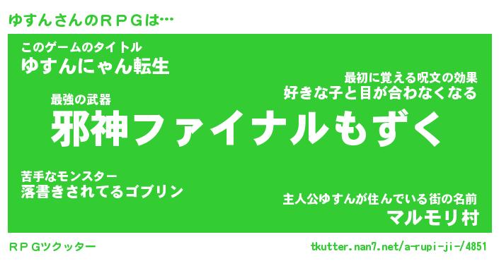 | 胡散臭い通販商品みたいなあだ名 | 『億万長者になれるブレスレット…その名も「ゆすん」』 |