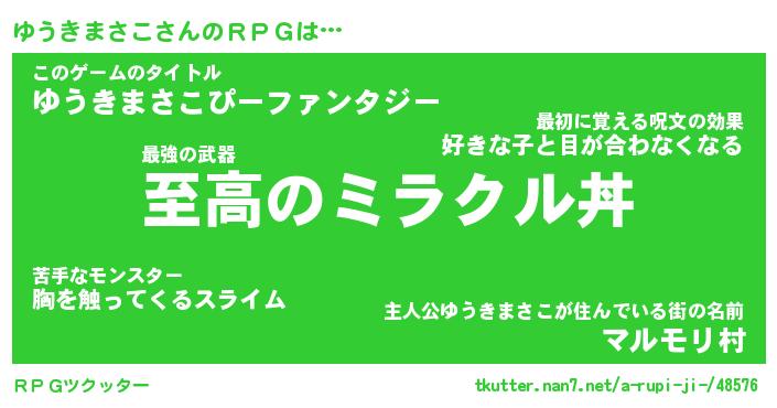 | 男性向けラノベタイトル風あだ名 | 『ユウキマサコアートオンライン』 |