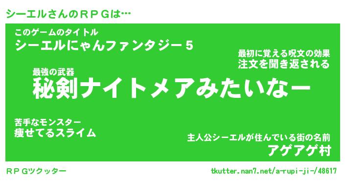 | ファンタジー風あだ名 | 『シーフェル』『エターナルシーエルー』 |