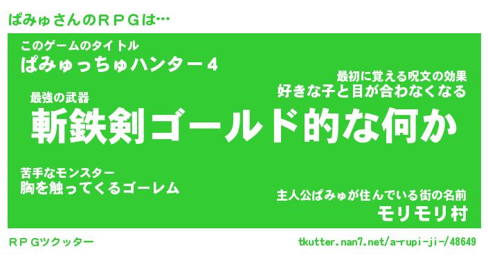 | 伝説のあだ名 | 『伝説のスナイパーぱみゅ』 |