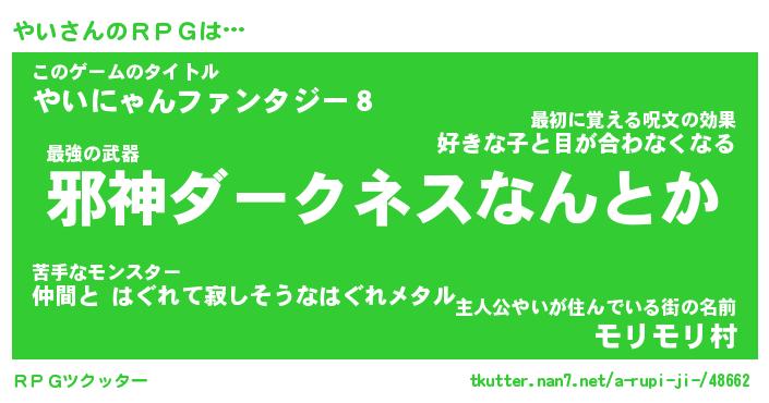 | 男性向けラノベタイトル風あだ名 | 『ヤイアートオンライン』 |