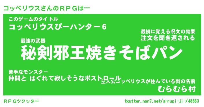 | 男性向けラノベタイトル風あだ名 | 『コッペリウスの憂鬱』 |