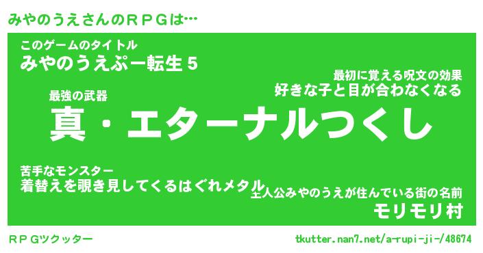 | ファンタジー風あだ名 | 『ミヤフェル』『エターナルミヤノウエー』 |