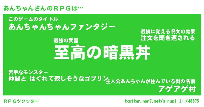 | 男性向けラノベタイトル風あだ名 | 『アンチャンアートオンライン』 |
