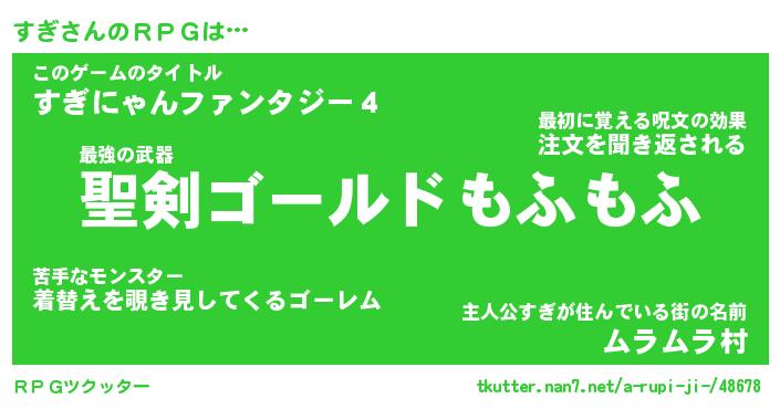 | ファンタジー風あだ名 | 『スギフェル』『エターナルスギー』 |