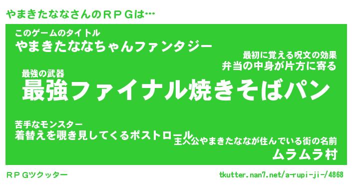 | 胡散臭い通販商品みたいなあだ名 | 『モテモテ間違いなし水晶球…その名も「やまきたなな」』 |