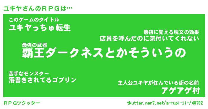 | 男性向けラノベタイトル風あだ名 | 『ユキヤアートオンライン』 |