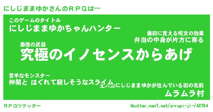 | 肩書あだ名 | 『にしじままゆか御曹司』 |