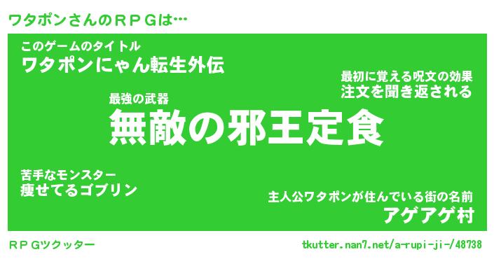 | 男性向けラノベタイトル風あだ名 | 『ワタポンアートオンライン』 |