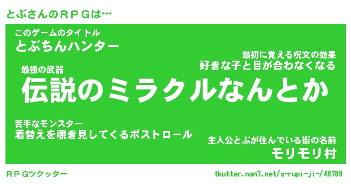 | ファンタジー風あだ名 | 『トブフェル』『エターナルトブー』 |