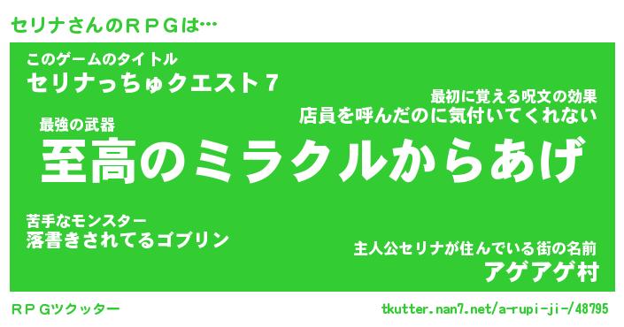 | ファンタジー風あだ名 | 『セリフェル』『エターナルセリナー』 |