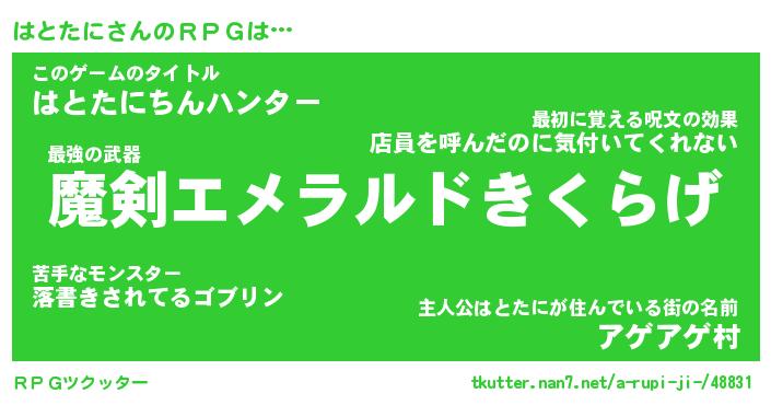 | 胡散臭い通販商品みたいなあだ名 | 『必ず成功する霊験あらたかなお札…その名も「はとたに」』 |