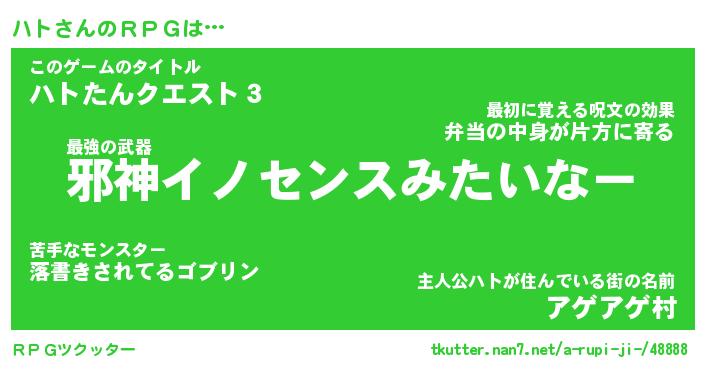 | 男性向けラノベタイトル風あだ名 | 『ハトアートオンライン』 |