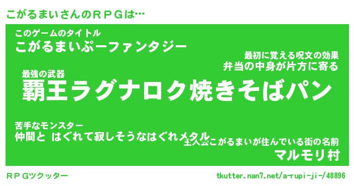 | 伝説のあだ名 | 『封印されし竜騎士こがるまい』 |