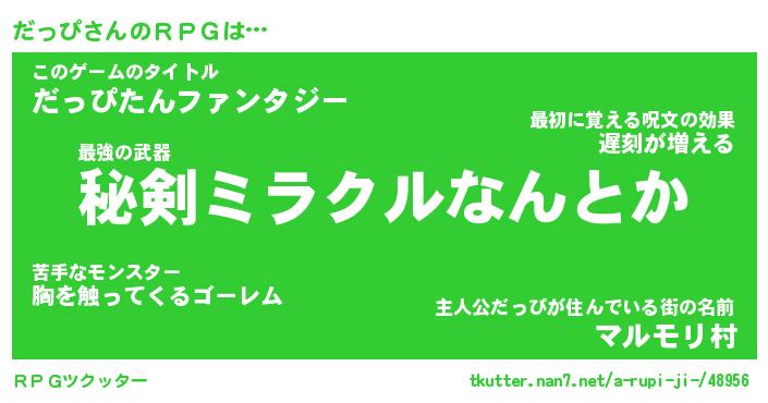 | 男性向けラノベタイトル風あだ名 | 『だっぴの憂鬱』 |