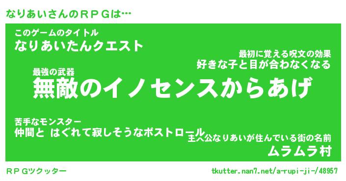 | 男性向けラノベタイトル風あだ名 | 『ナリアイアートオンライン』 |