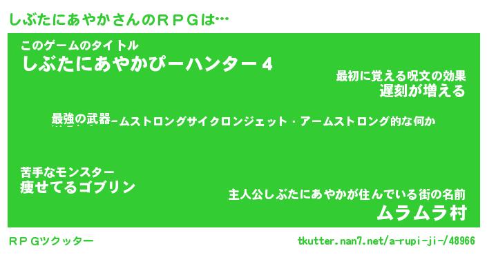 | 胡散臭い通販商品みたいなあだ名 | 『億万長者になれるブレスレット…その名も「しぶたにあやか」』 |