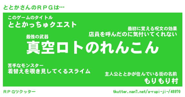 | ヒーロー風カッコイイあだ名 | 『スーパートトカ』『ウルトラととかマン』 |