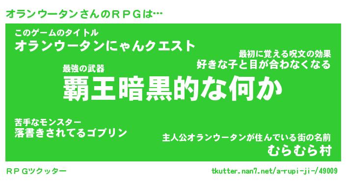 | 男性向けラノベタイトル風あだ名 | 『オランウータンアートオンライン』 |