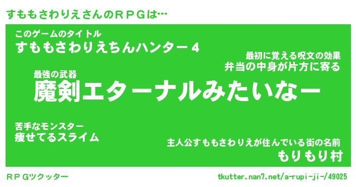 | 伝説のあだ名 | 『伝説の傭兵すももさわりえ』 |
