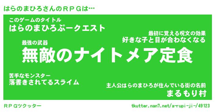 | 男性向けラノベタイトル風あだ名 | 『ハラノマヒロアートオンライン』 |