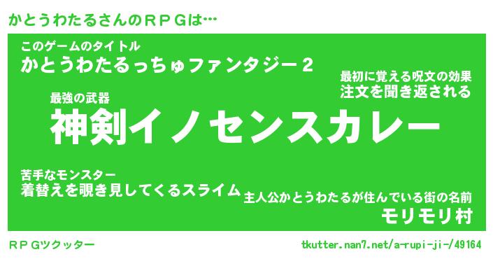 | 男性向けラノベタイトル風あだ名 | 『かとうわたるの憂鬱』 |
